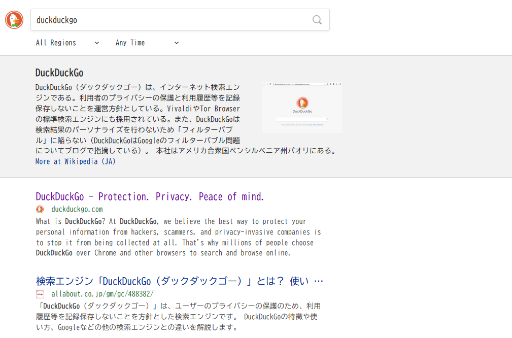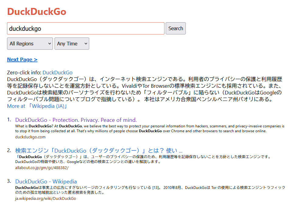日本語の記事が少ない分野や、英語で書かれたドキュメントなどの原文を探したい場合もDuckDuckGoはとても便利に使うことができます。