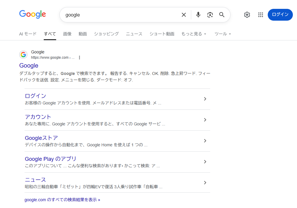 一番上に出てくる検索結果がちょっと微妙なことがあります。例えば、サービス名で検索したときにそのサービスのトップページが一番上に出てくることが理想的ですが、DuckDuckGoではそのサービスのログイン画面が一番上に出てくることがあります。