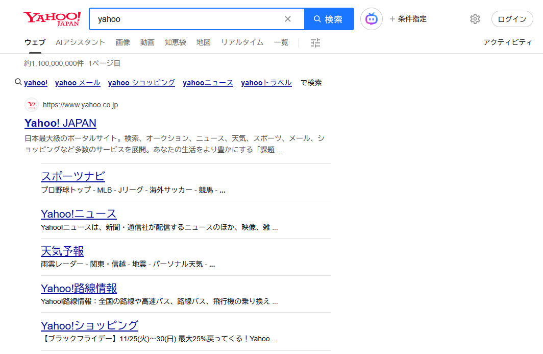 以前はYahoo!独自の検索エンジンが使われていたようですが、現在はGoogleの検索アルゴリズムを使用しています。シェアは10%前後です。