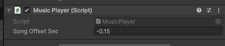 また、HierarchyウィンドウでAudio Sourceを選択して、Song Offset Secを調整しましょう。私の環境では-0.15でちょうど良さそうでした。