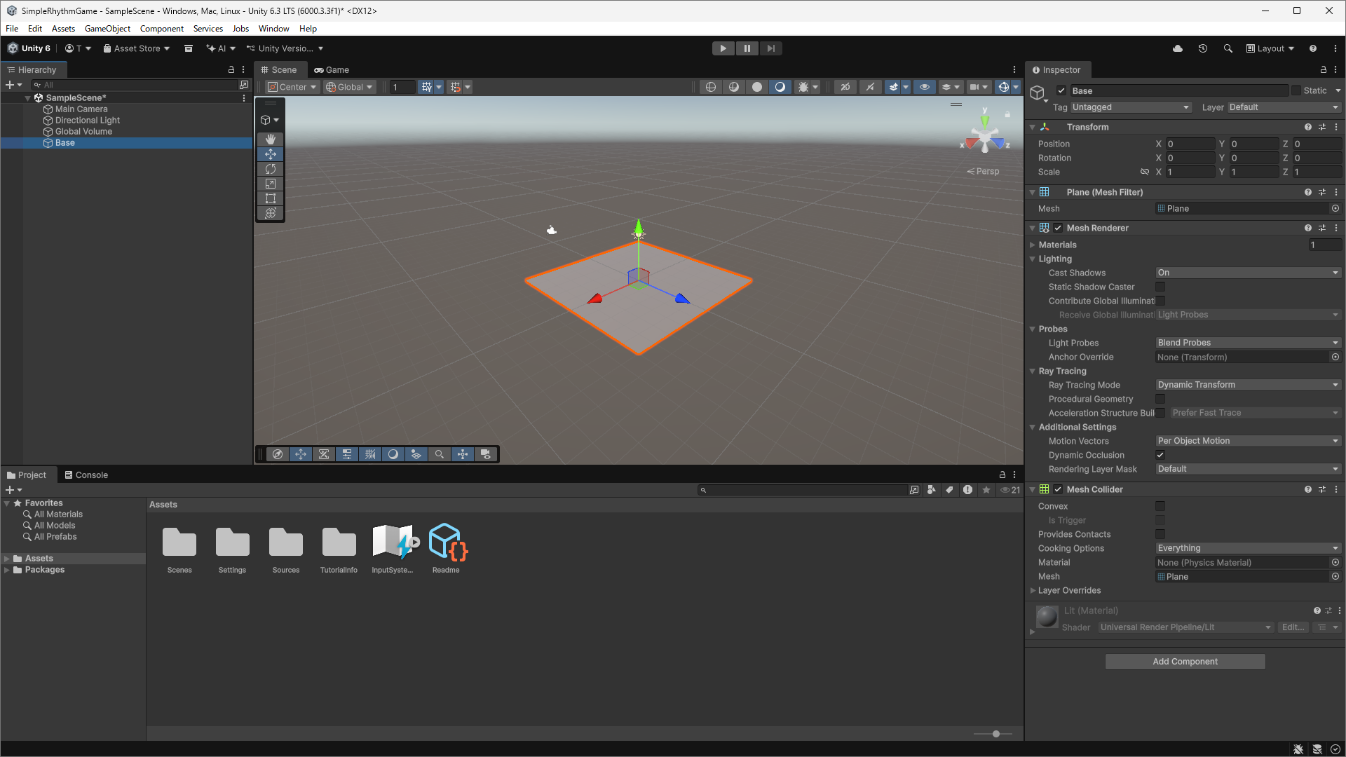 この平面をリズムゲームの土台になるように形を変えていきます。