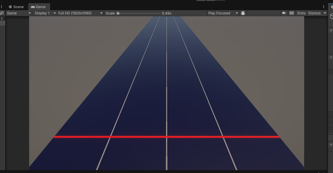 Gameビューを見てみると、判定線が遠くにあるのがわかります。