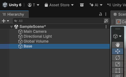 作成するとオブジェクト名を変更できるようになりますので、オブジェクト名をBaseに変更します。