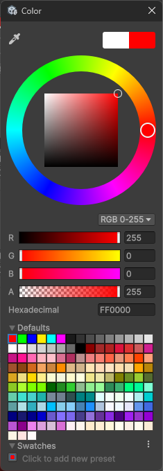 R: 255, G: 0, B: 0 としました。