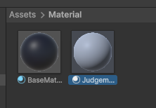 Projectウィンドウから、Materialフォルダ内で空いているところで右クリック→Create→Materialを選択して新しいマテリアルを作成し、マテリアル名をJudgementLineMaterialとします。
