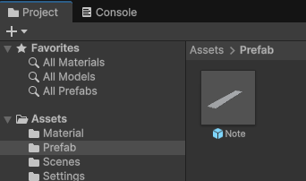 今後Noteを編集するときは、ここ(ProjectウィンドウのAssets > Prefab フォルダ)にあるNoteをダブルクリックして編集します。